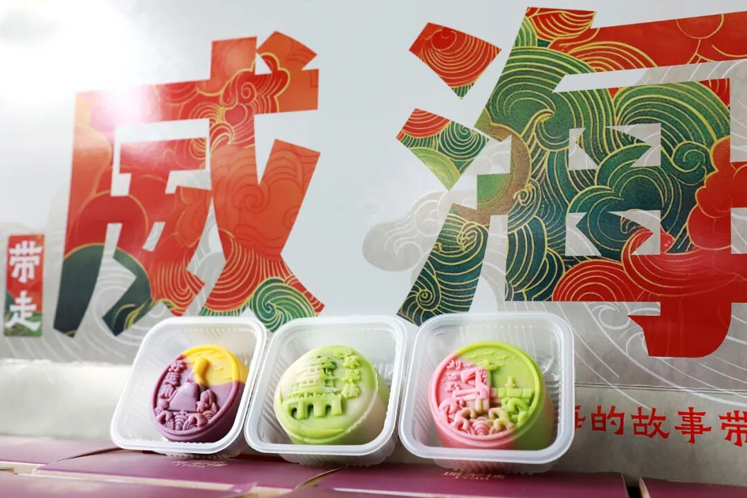 原来,这款文创糕点的灵感,全部来源于威海的城市地标——海草房、刘公岛、环翠楼、好运角。研发团队不仅在糕点造型上还原了地标的特色轮廓,还在包装设计上采用大胆的撞色风格,让每一款糕点都像一件小巧的艺术品,拿在手里拍照,随手就能拍出“威海打卡大片”。